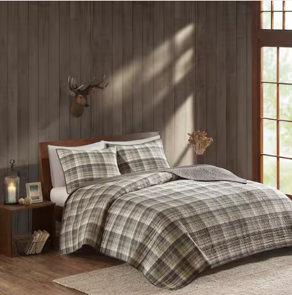 Add a touch of classic style and cozy warmth to your bedroom with the Woolrich Gray Plaid 2-Piece Comforter Set. Designed for Twin and Twin XL beds...