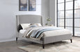 Add a touch of style and comfort to your bedroom with this upholstered bed. Its gentle curved headboard and thick sides are padded with trendy grey chunky boucle fabric. The whole frame is covered in the same soft fabric, creating a cozy and inviting look. The texture adds sophistication, making it a visually stunning piece that is both comfortable to sit on and admire from afar.